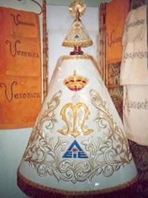 La Asociación Empresarial de Instalaciones Eléctricas de Zaragoza donó este manto confeccionado en terciopelo blanco y bordado en plata y oro con el anagrama de la dicha Asociación. Fue ofrecido el 5 de Julio de 2002. La segunda fotografía corresponde al interior de la tienda Bordados Olga, donde puede observarse una réplica en una imagen pequeña de la Virgen del Pilar.