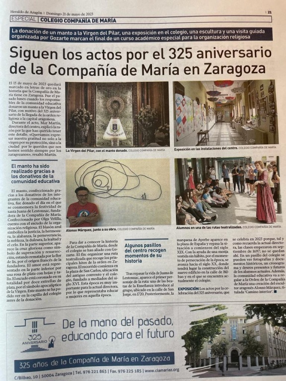 El 15 de mayo de 2023, el colegio Compañía de María ofreció este manto a la Virgen del Pilar en su aniversario 325 de la llegada de esta orden religiosa a la capital aragonesa.